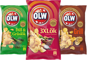 Till vår stora lycka har även OLW ett stort utbud av veganska chips. Vår storfavorit är klassikern Dill & gräslök, men 3x lök är inte dum heller!